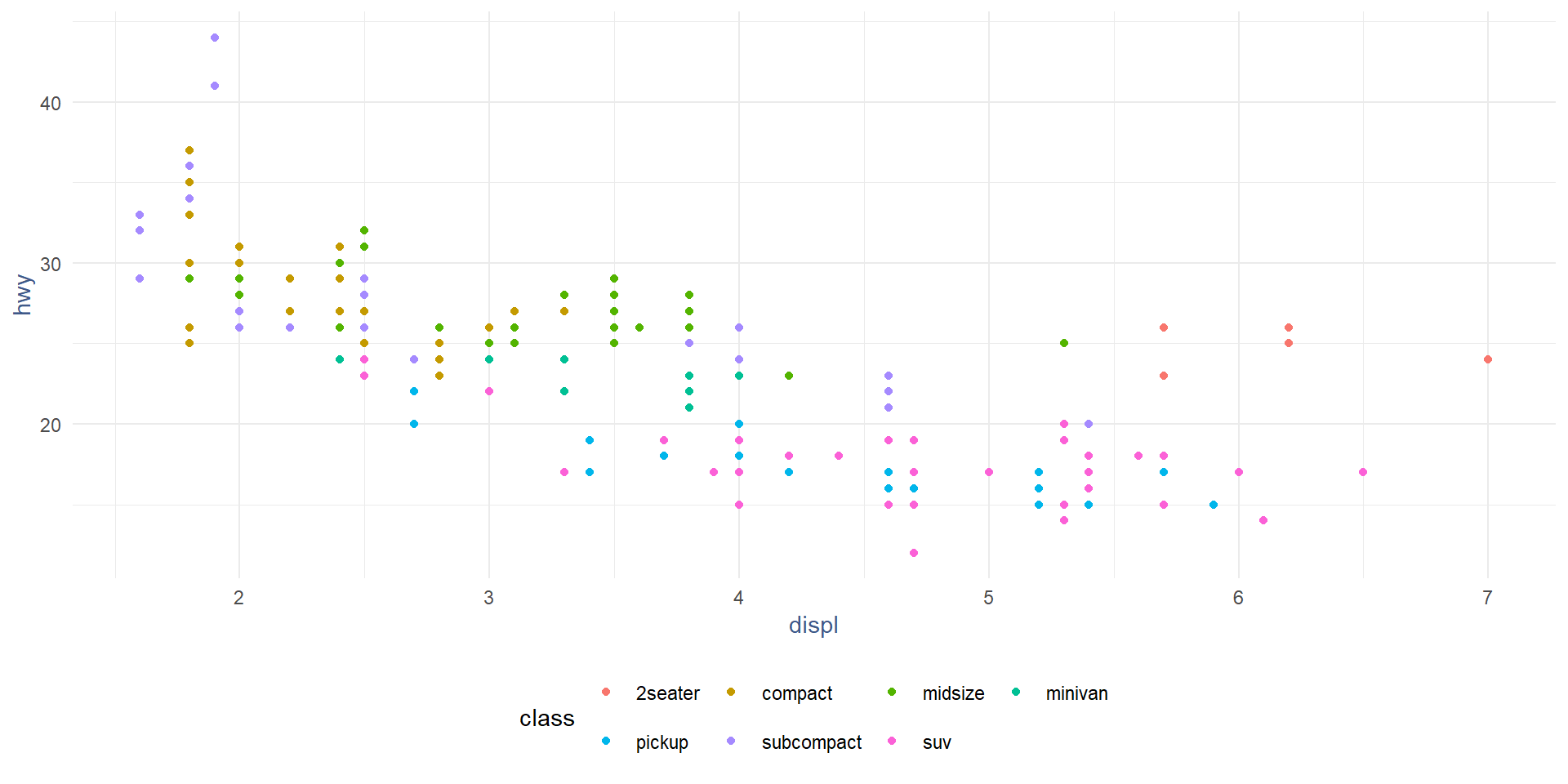 aes() — функція для задання естетичних параметрів (відображення змінних на візуальні елементи графіка):